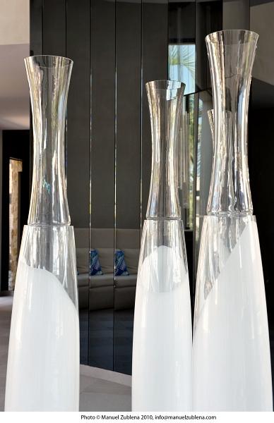 Le duo formé par le créateur et directeur Shahé Kalaidjian et l'architecte d'intérieur et designer français, Christophe Pillet, ancien collaborateur de Philippe Starck a donné à ce superbe établissement un cachet résolument minimaliste et monochrome, couvrant à peine le chant des cigales par les seuls clapotis et remous des piscines. Vous apprécierez les courbes douces et les espaces frais, recouverts de sols dallés, les immenses baies vitrées habillées de voilures légères et le confort inouï des 37 chambres dont 2 suites, des luxueux bungalows, Cocoons et des 2 villas avec piscine privée, un décor dans lequel vous aimerez vous promener pieds nus et légèrement vêtus. Le style est léger, très contemporain assorti de lignes pures, de matières nobles mais néanmoins discrètes. Côté mobilier, Christophe Pillet l'a conçu simple, raffiné, intemporel, en accord avec le style balnéaire qui sied à l'endroit. Chambres, villas, espaces communs, spa, restaurant... tout offre au regard une superbe harmonie entre formes et matières, s'amusant avec cette extraordinaire lumière provençale qui met d'autant mieux en valeur la vue imprenable sur la nature offerte de n'importe quel endroit de l'hôtel. Autre duo gagnant, celui du restaurant Colette et du Bar Dom Pérignon au cœur d'un aménagement Nouvelle Vague signé Christophe Pillet qui vous rappellera à tout instant combien cet endroit est agréable à vivre. Côté Jardin, c'est à Christophe Ponceau que l'on doit l'agencement du parc paysager de l'hôtel. Plus de 8000 m2 ont été confiés à ce maître paysager qui a su habilement mêler la nature sauvage au confort ultra moderne des lieux. Des palmiers, des oliviers, une nature où la végétation sait être omniprésente sans être envahissante. Voici donc planté le décor de cet hôtel hors norme, havre de douceur et de sérénité.Une ambiance détente à travers de luxueuses prestations